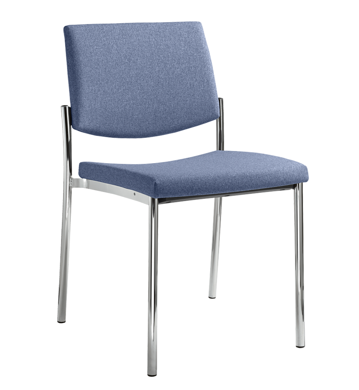 Das pulverbeschichtete 4-Fußgestell ist in schwarz oder verchromt erhältlich und mit abriebfesten Kunststoffgleitern ausgestattet. Optional sind auch Filzgleiter möglich. Das extra starke Sitz- und Rückenpolster kann mit verschiedenen Objektbezügen geliefert werden, während schwarze Kunststoffarmlehnen als zusätzliche Option zur Verfügung stehen.