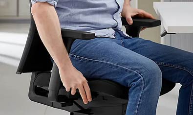 So geht’s: - Stellen Sie die Rückenlehne so ein, dass sie den unteren Rücken (Lendenwirbelsäule) leicht nach vorn drückt. - Die Lehne sollte Bewegungen mitmachen („Synchronmechanik“): Wenn Sie sich nach hinten lehnen, sollte sie stützend nachgeben. - Lehnen Sie sich regelmäßig zurück, um die Bandscheiben zu entlasten.