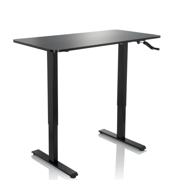 Dieser mittels Kurbel manuell höhenverstellbare Schreibtisch passt sich dem individuellen Nutzer und Einsatzgebiet perfekt an. Mit seiner mittleren Größe ermöglicht er einen gesunden Wechsel zwischen Sitzen und Stehen sowie flexibles Arbeiten im Büro oder im Home Office. Er nimmt nicht viel Platz weg und eignet sich somit bestenfalls als Rednerpult oder Ergänzung zum normalen Schreibtisch. Der vielseitige Sitz-Steh-Tisch verfügt über eine großzügige (120x60 cm.) und solide (belastbar bis 60 kg.) Arbeitsplatte aus leicht zu reinigendem MDF-Material. Die Handkurbel, mit der die Tischpaltte auf die gewünschte Höhe gebracht wird, ist besonders einfach in der Handhabung und kann nach Verwendung praktisch eingeklappt und unter der Tischplatte verstaut werden. Das formschöne Fußgestell aus pulverbeschichteten Stahl ist mit Kunststoffgleitern ausgestattet.